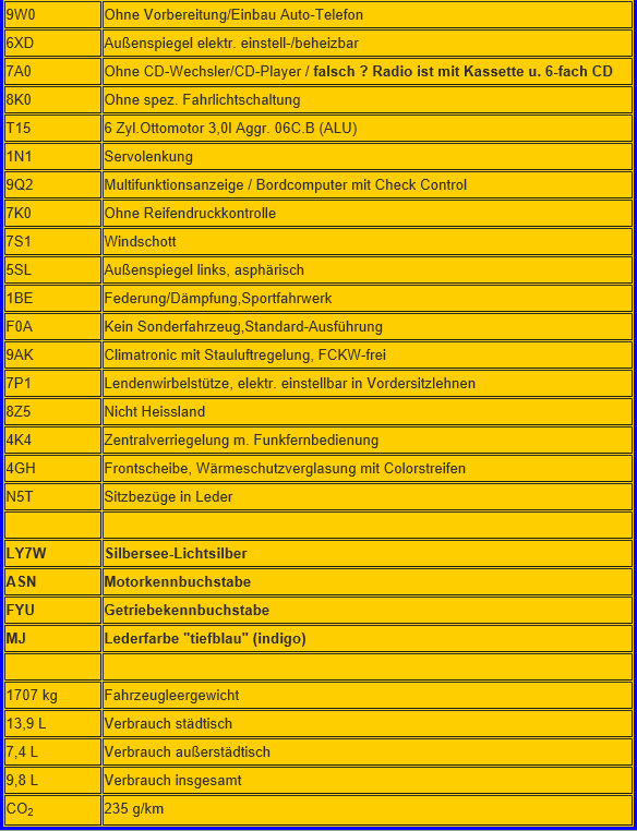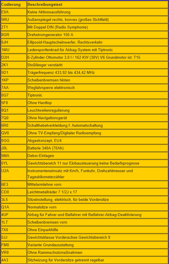 Ausstattung laut Codierung im Service-Heft - Cabrio fahren